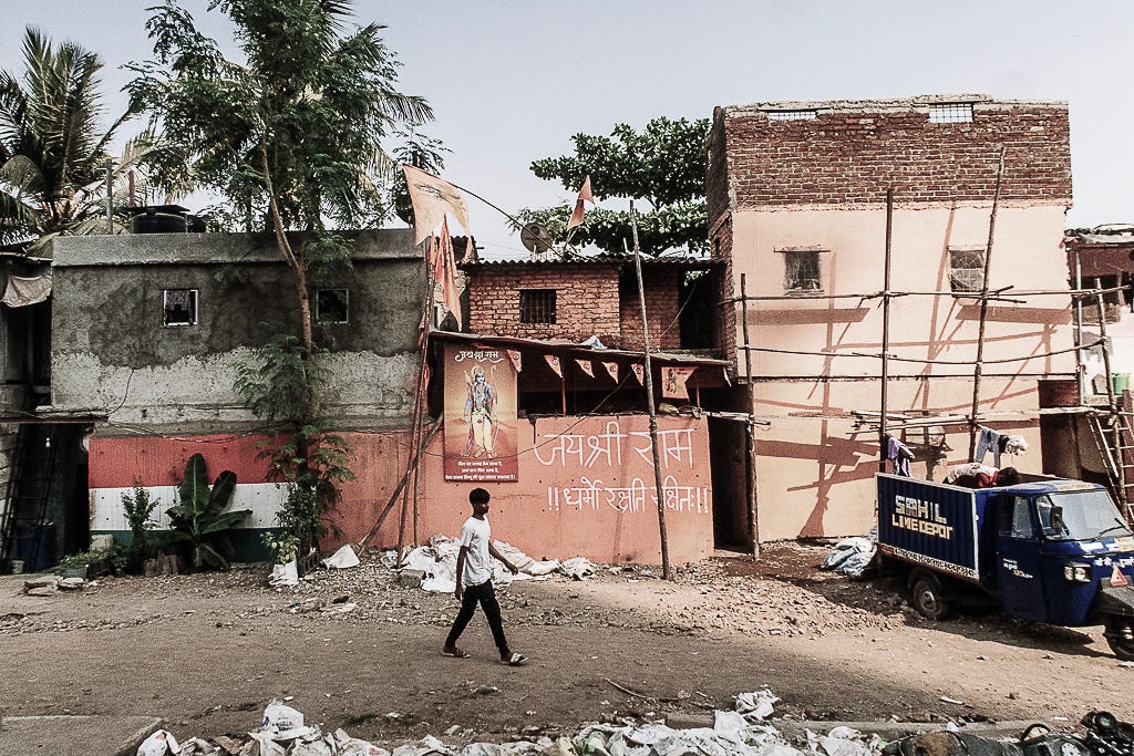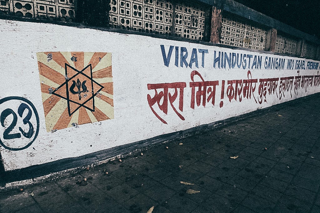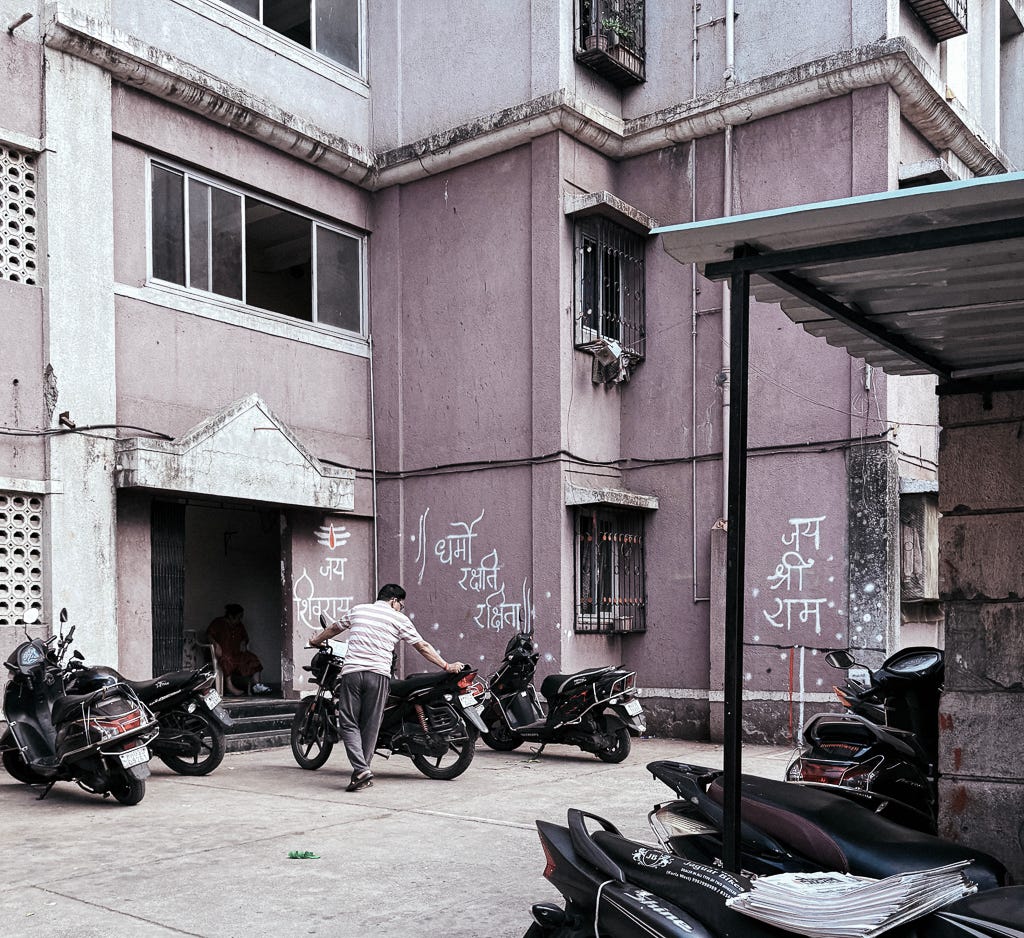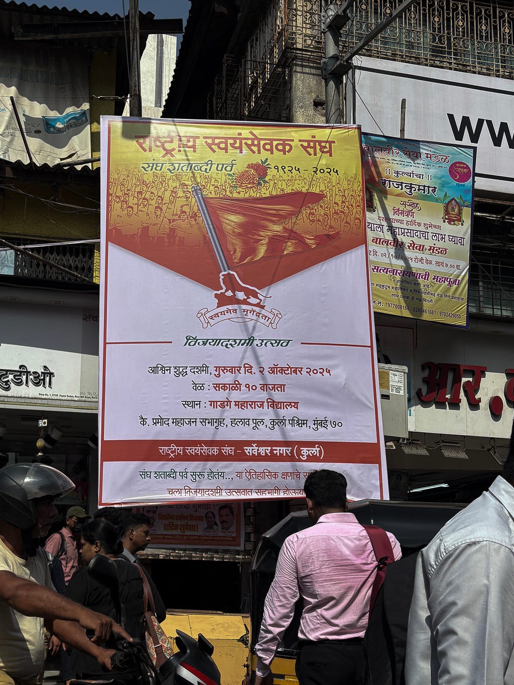 India is officially a secular democracy, and the Hindutva right believes in a Hindu Religious state, which they call the Hindu Rashtra. All Politics is Local. And when one of the affiliates’ male militia organisations of Hindutva likes to mark territory in Mumbai, they use the term Hindu Rashtra.