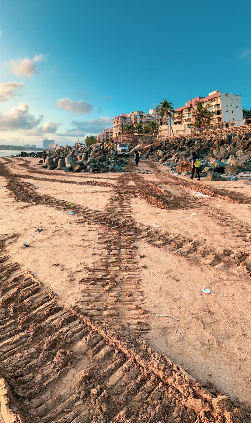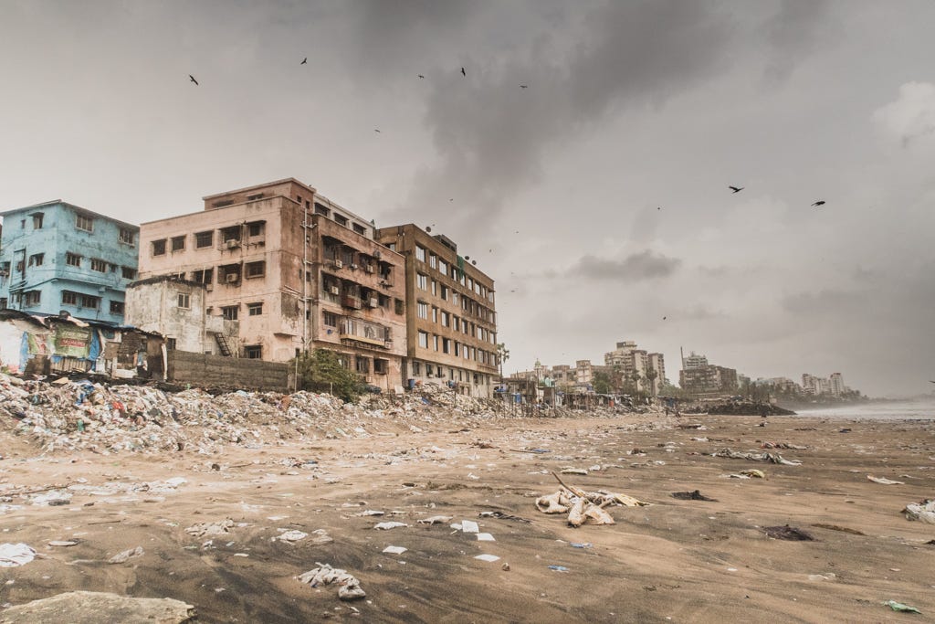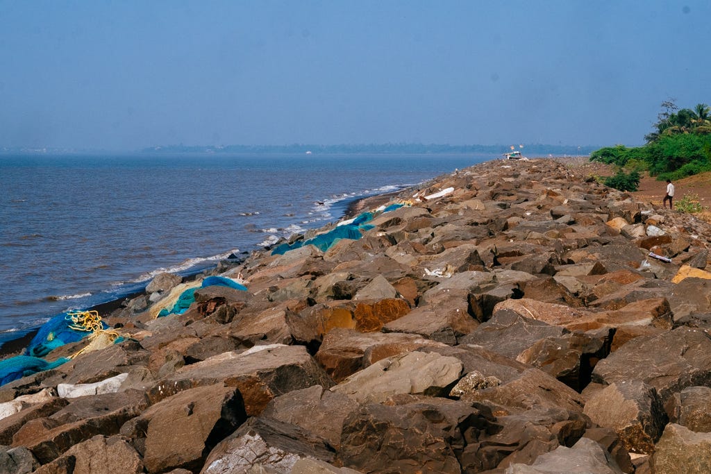 Every monsoon, the monsoon winds and waves lash the Mumbai and Western Coast gnawing away at the sand. Dams and human activities along the coast interfere with the natural flow and interaction of the ocean and the land, causing erosion that is not very well understood. The reaction to this is sea walls like the one along Versova Beach in Mumbai.
