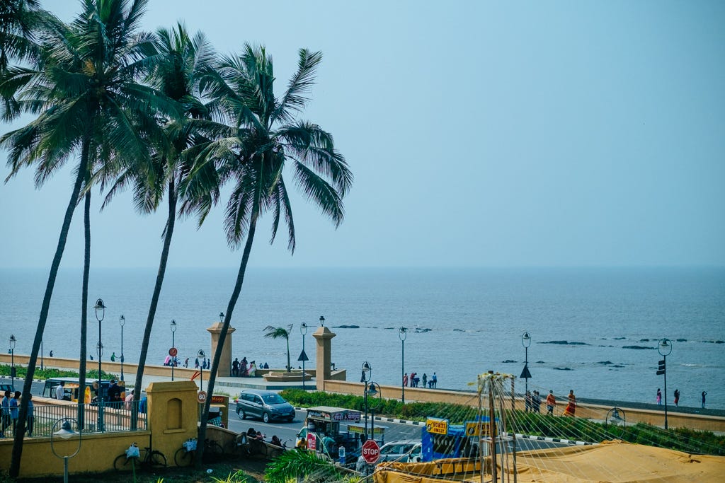 Earlier, the road was a little inland, and the beach was much broader. The new road also violates the old coastal regulation rules for construction that have since been relaxed here. The beach where people dirtied their feet is narrower. The space for people to drive has increased.