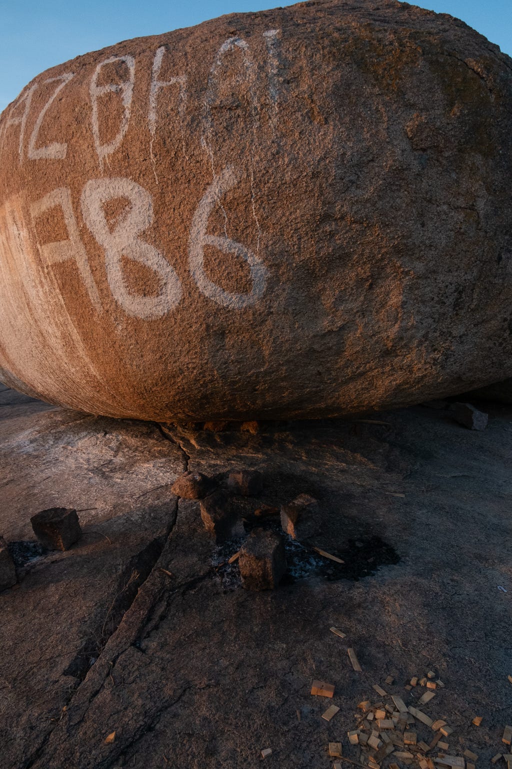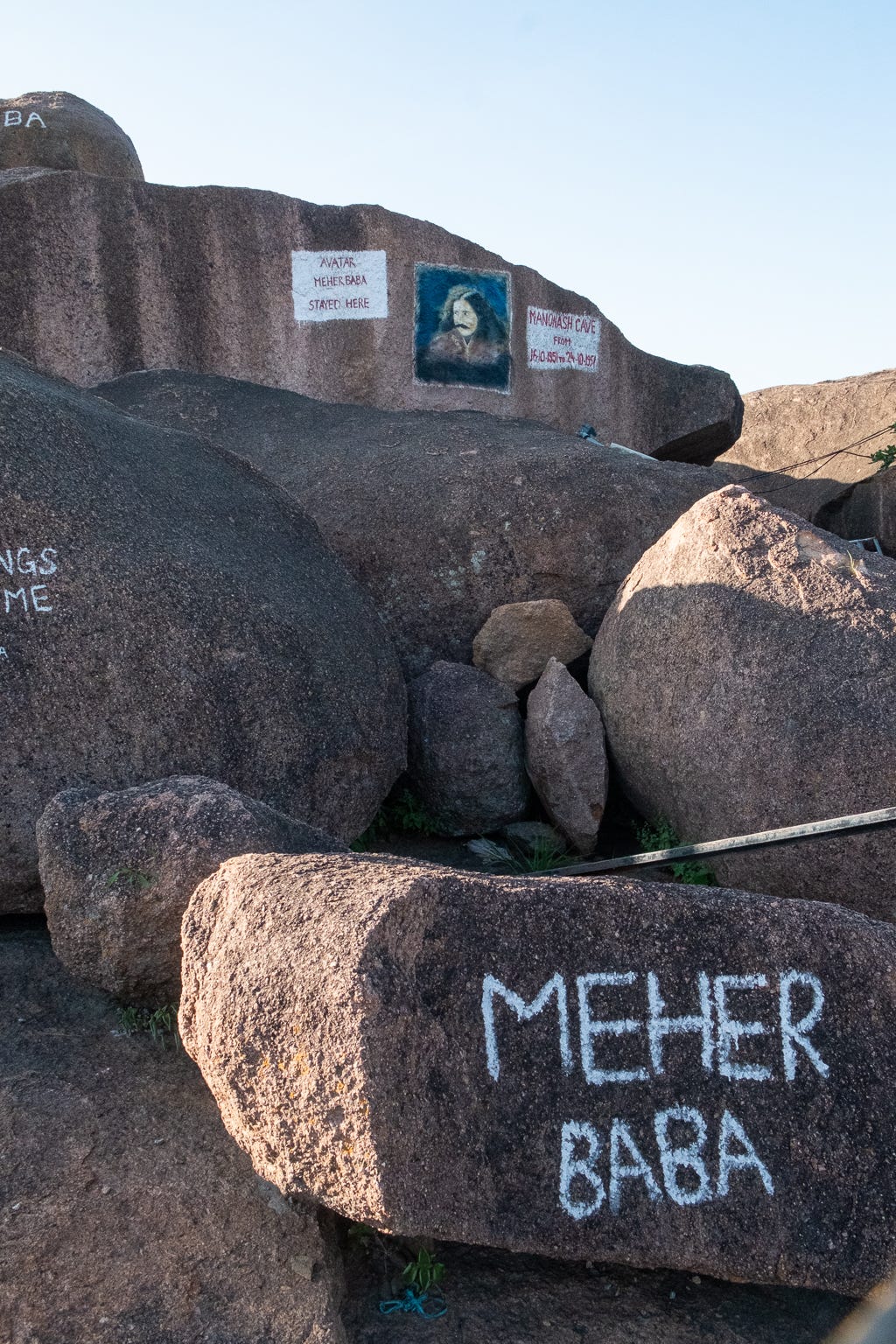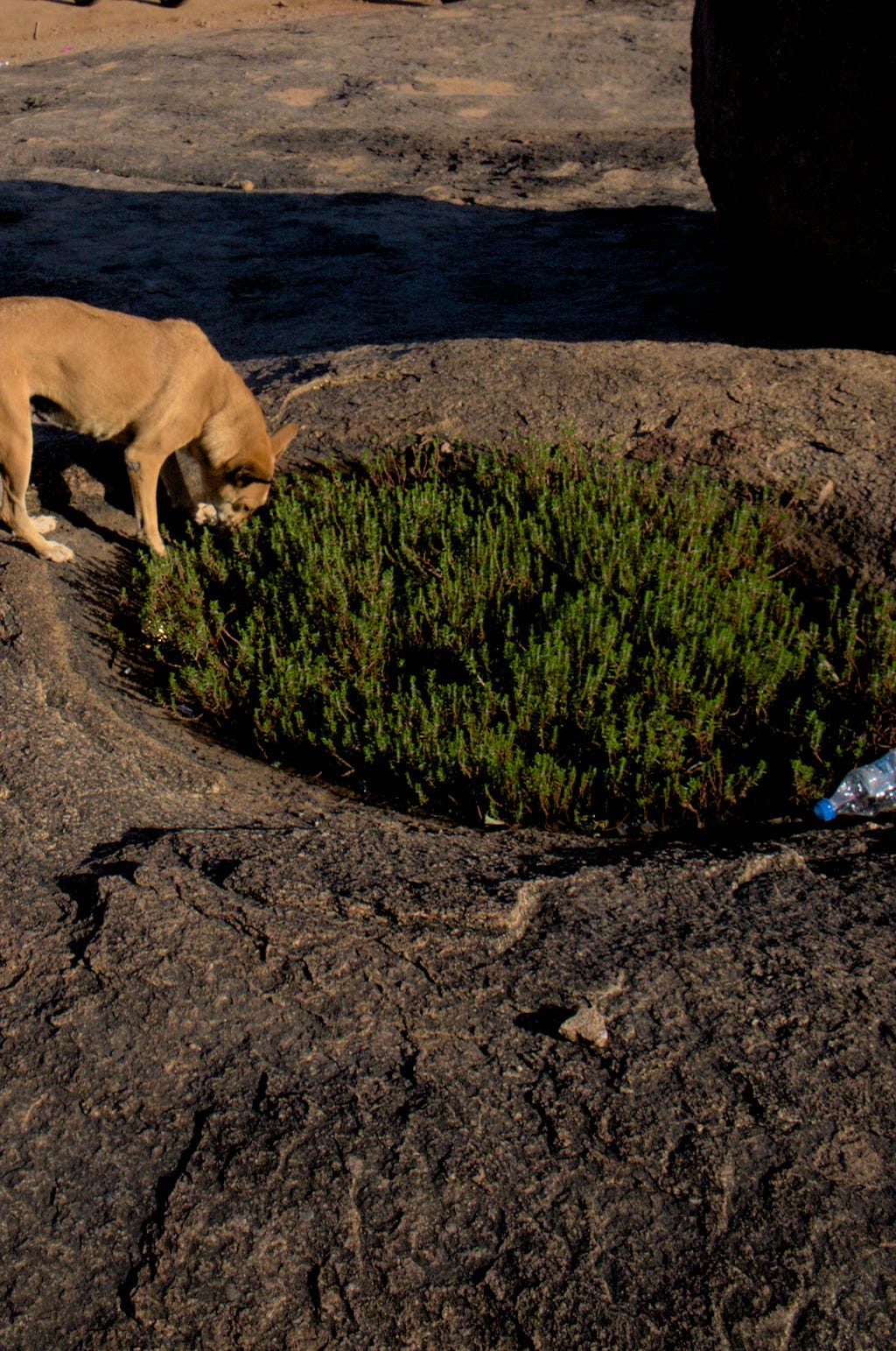 The protected rocks of Khajaguda itself seem to be divided among different groups - a dargah, a small shrine and a place where a godman once mediated. The paints of the rocks mark their territory. Dogs, insects and animals sniff around them, making their markings.