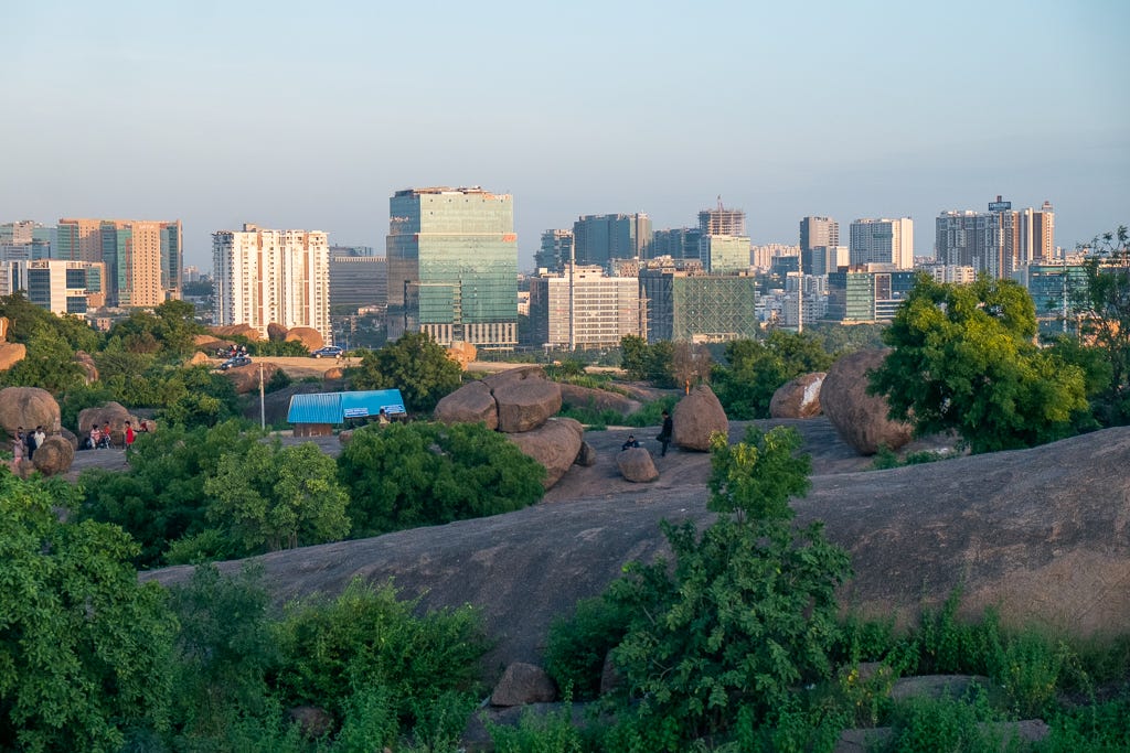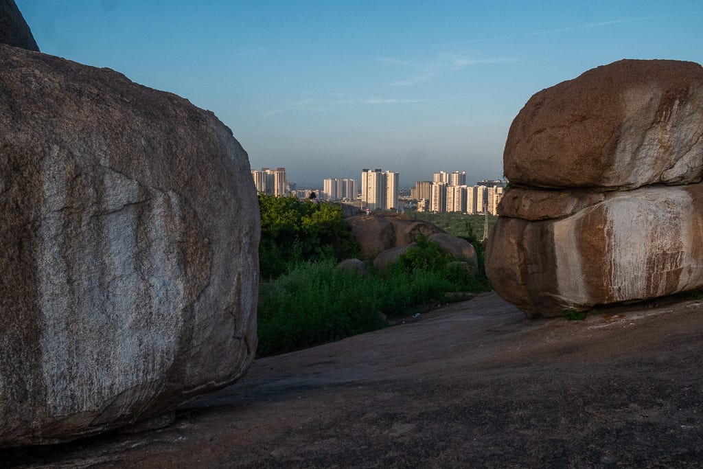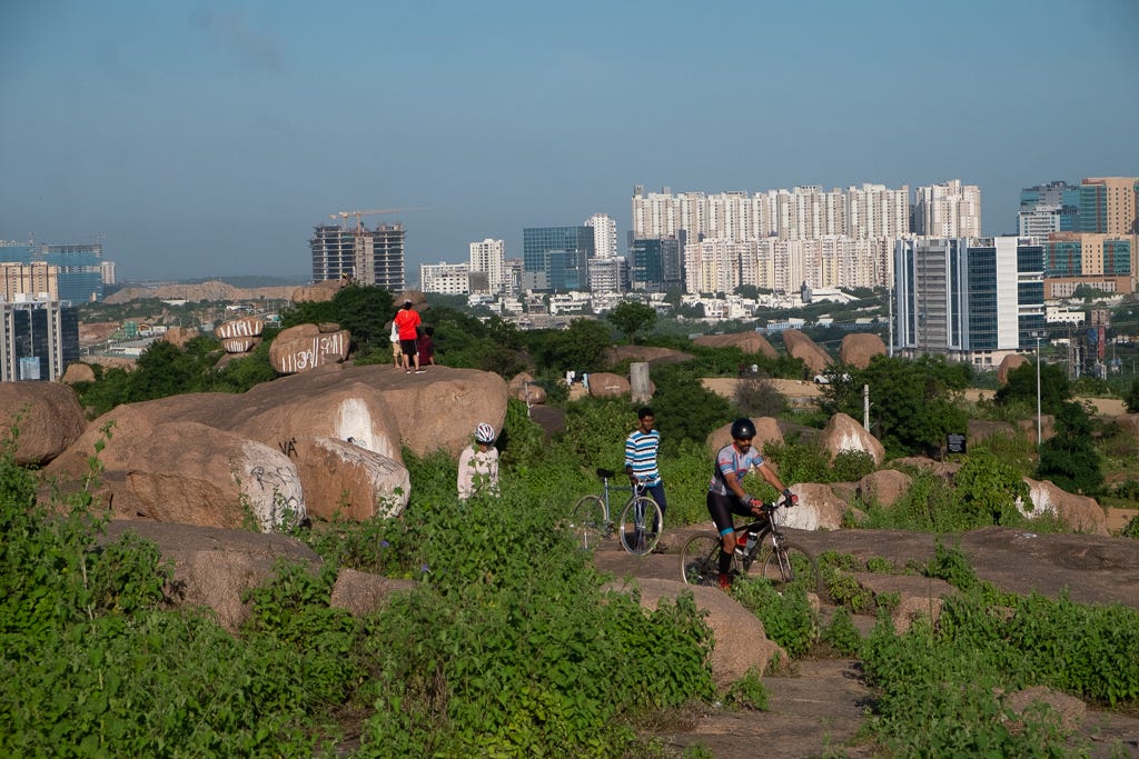 An ocean of concrete, steel and glass is connected by highways often clogged with traffic. The new skyline, however, hasn’t completely obliterated the one from the past that was headlined by the rocks, and at Khajaguda, we were on the top of one. Once outside the city, this place is far from its edges today. The lakes that controlled the floods and water supply to the city look like small stagnant about to be gobbled up by neat rows of fancy villas.