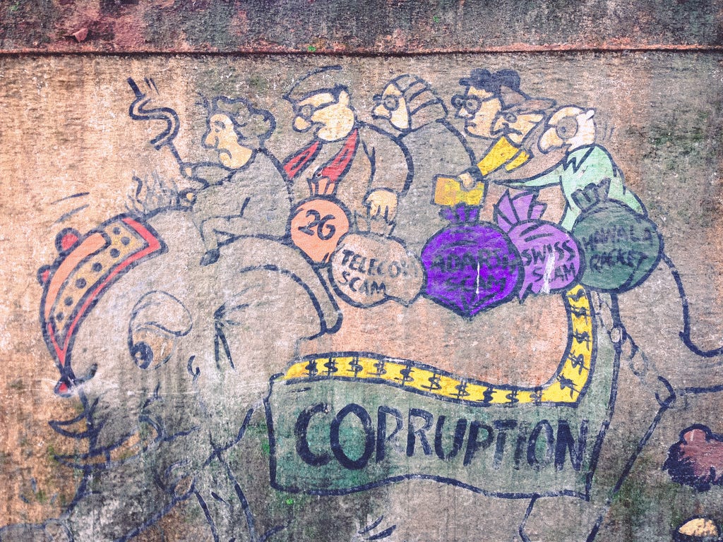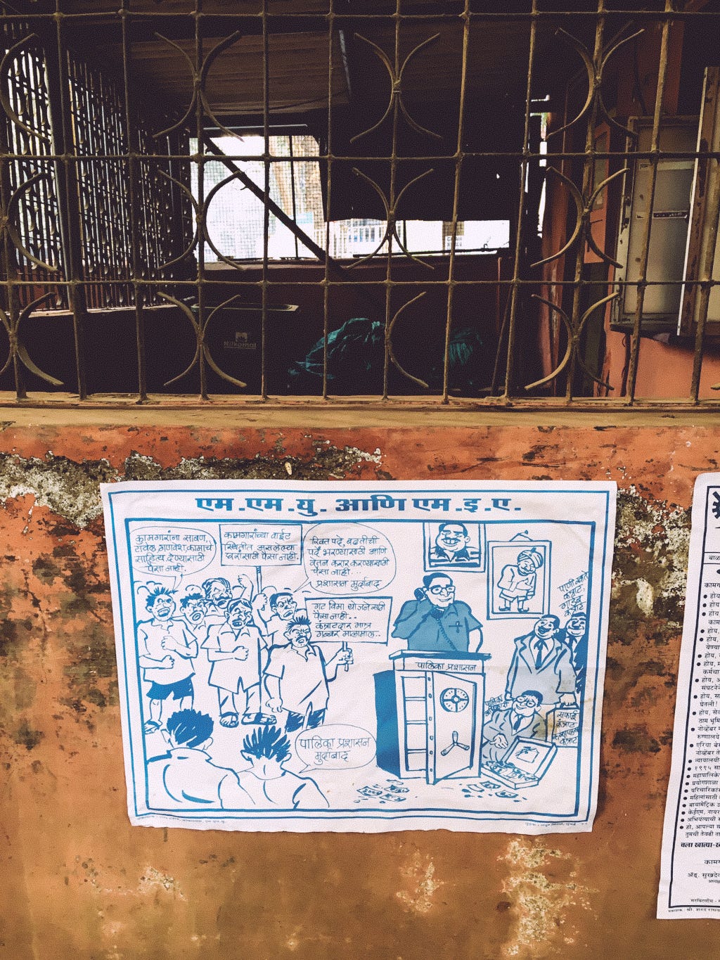 A protest cartoon on the walls of South Mumbai reminds us of the 20th century - the age of labour. In those days, walls were painted. Now, it’s easier to print and stick posters or hang banners.