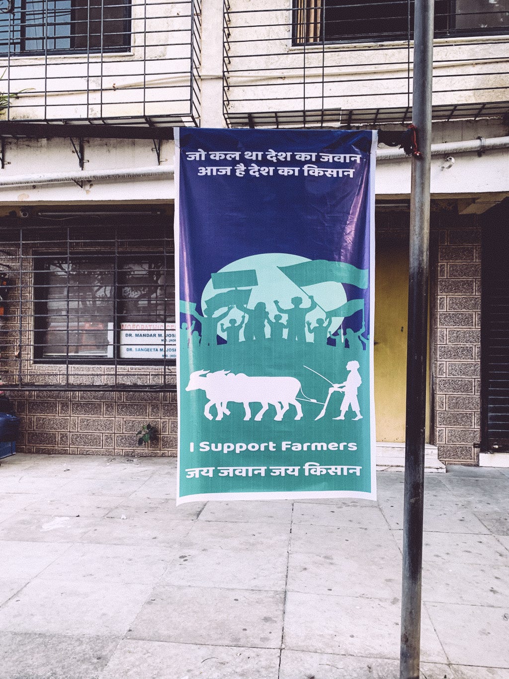 Protests from other parts of India echo on Mumbai's walls. For example, here is a poster supporting the Farmers’ Protests in Punjab, Uttar Pradesh, and Haryana near APMC in Navi Mumbai.