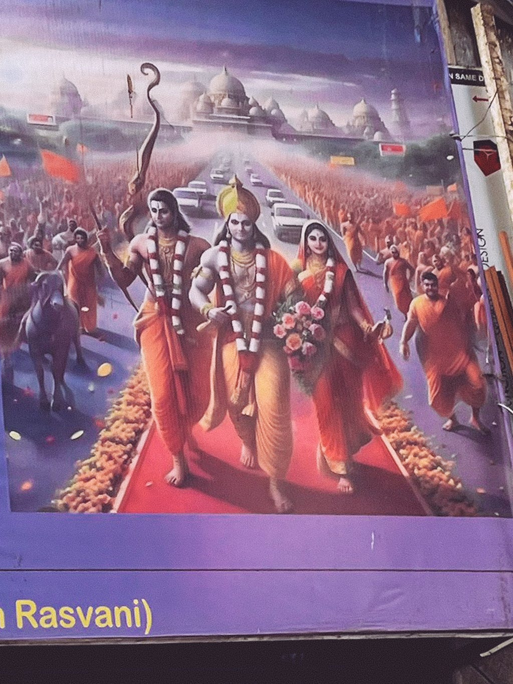 Shades of saffron being celebrated in January 2024 on the day the pet project of the Hindutva right, the Ram temple, built after demolishing the Babri Mosque, was inaugurated ahead of the elections that year.